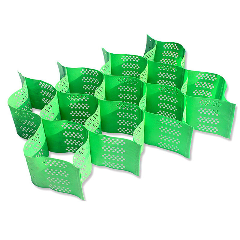Geocell is a net-shapped cell structure made by welding high intensity thermoplastic sheet.