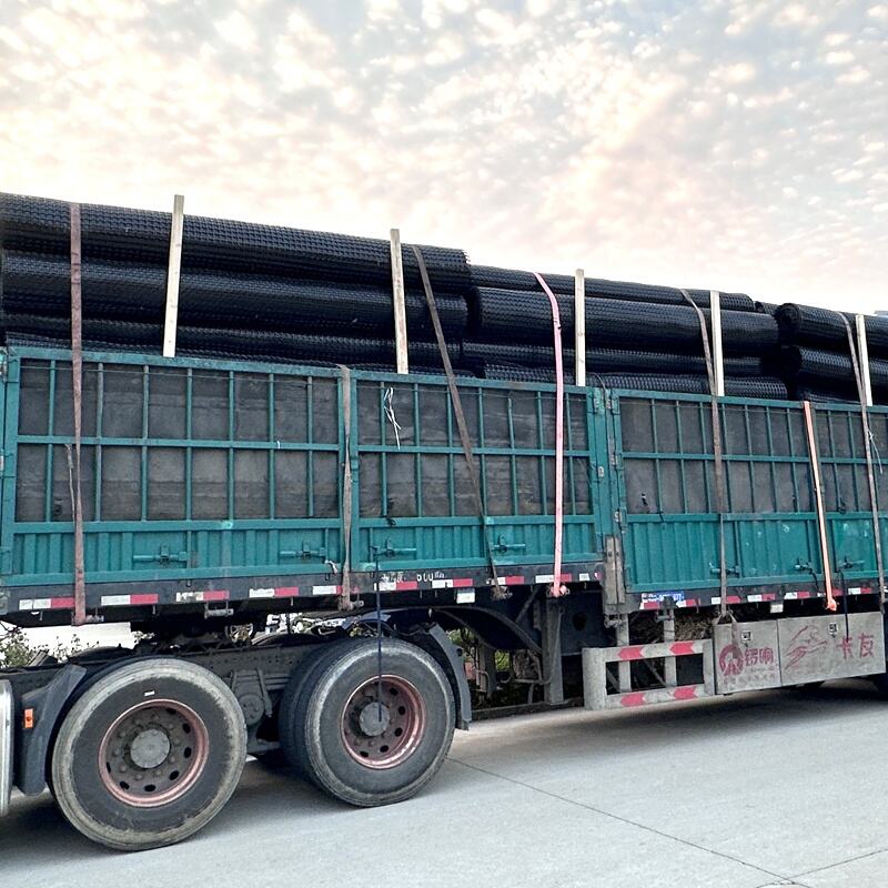 PP biaxial geogrid is manufactured from PP, it is produced through the process of extruding, punching, heating, longitudinal and transverse stretching.