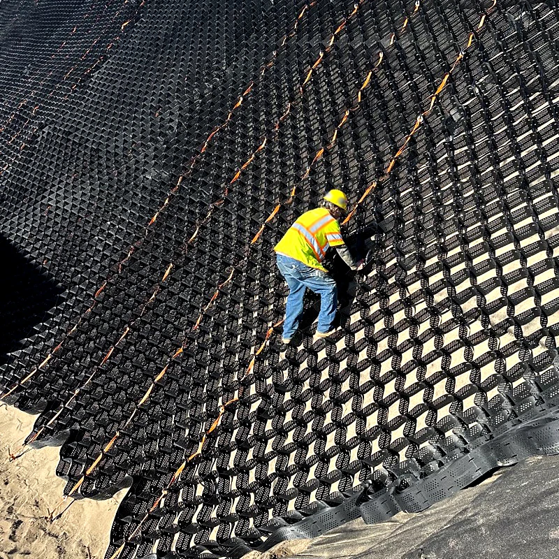 The three-dimensional lateral confinement of Cellular Confinement Systems along with anchoring techniques ensures the long-term